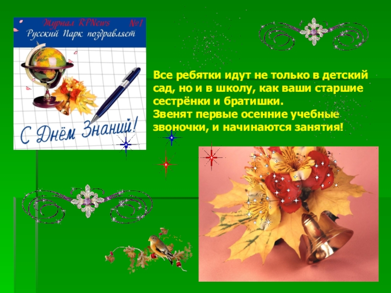 Все ребятки идут не только в детский сад, но и в школу, как ваши старшие сестрёнки и