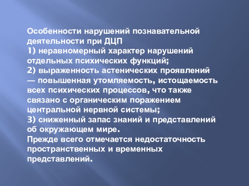Слайд 6Особенности нарушений познавательной деятельности при ДЦП