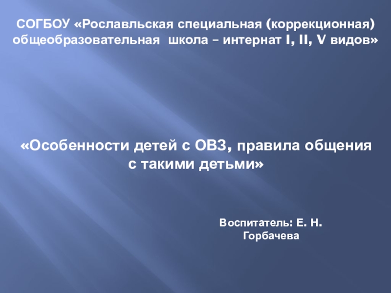 Слайд 1СОГБОУ «Рославльская специальная (коррекционная) общеобразовательная школа – интернат I, II, V