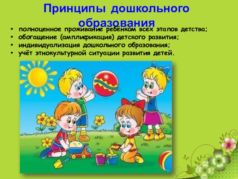 в сфере дошкольного образования в частности ФГОС. В ФГОС ДО новое видение целей и задач дошкольного образования отражено в ряде позиций: в принципах дошкольного образо-