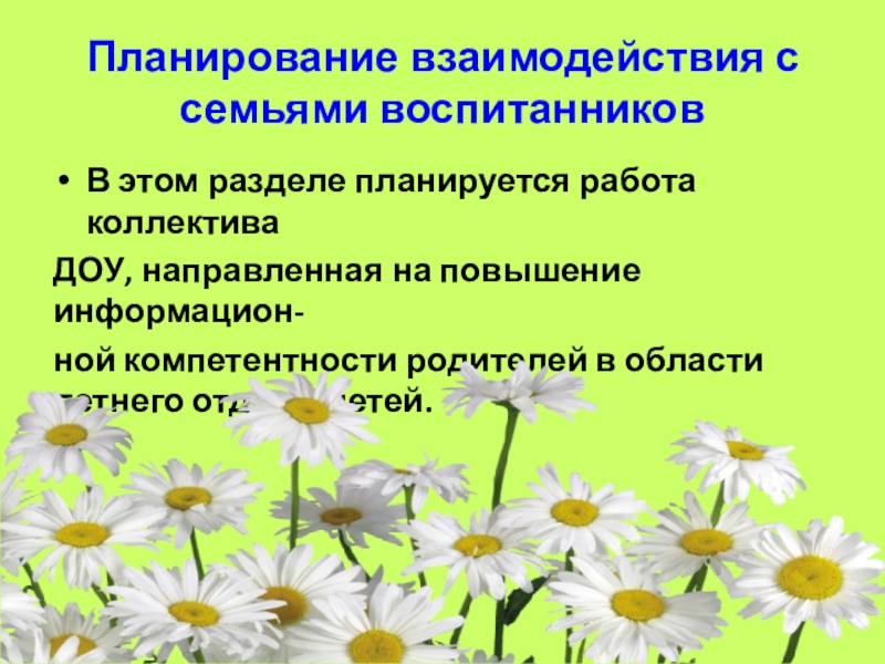 Слайд 19Планирование взаимодействия с семьями воспитанников