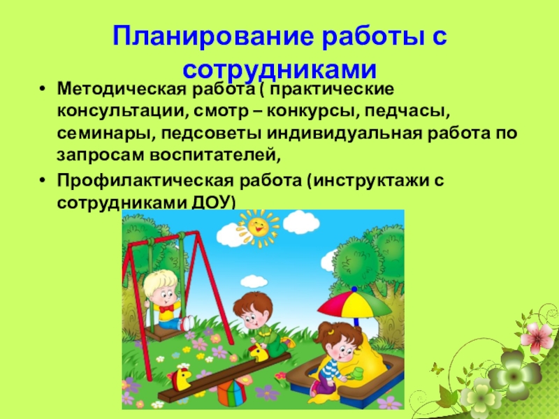 педчасы, семинары, педсоветы индивидуальная работа по запросам воспитателей,