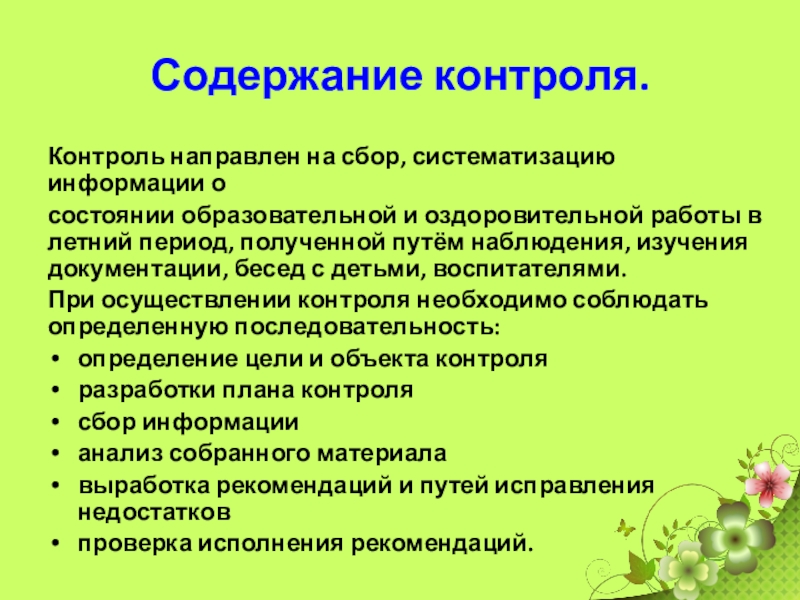 При осуществлении контроля необходимо соблюдать определенную последовательность: