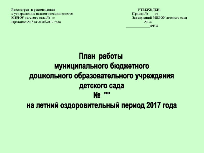 Слайд 1«Особенности организации летнего оздоровительного периода в ДОО