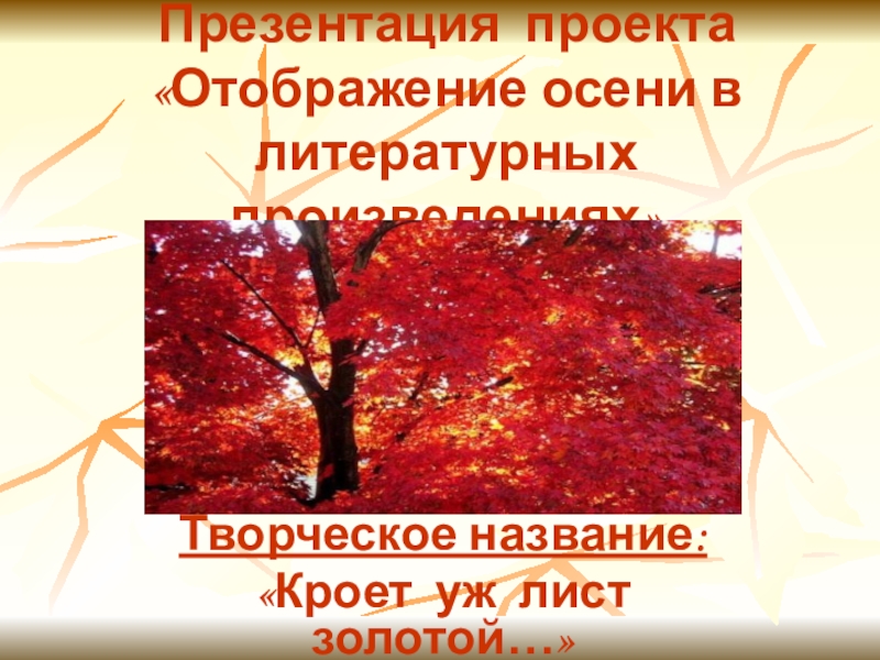 Презентация проекта «Отображение осени в литературных произведениях»Творческое название:«Кроет уж лист золотой…»