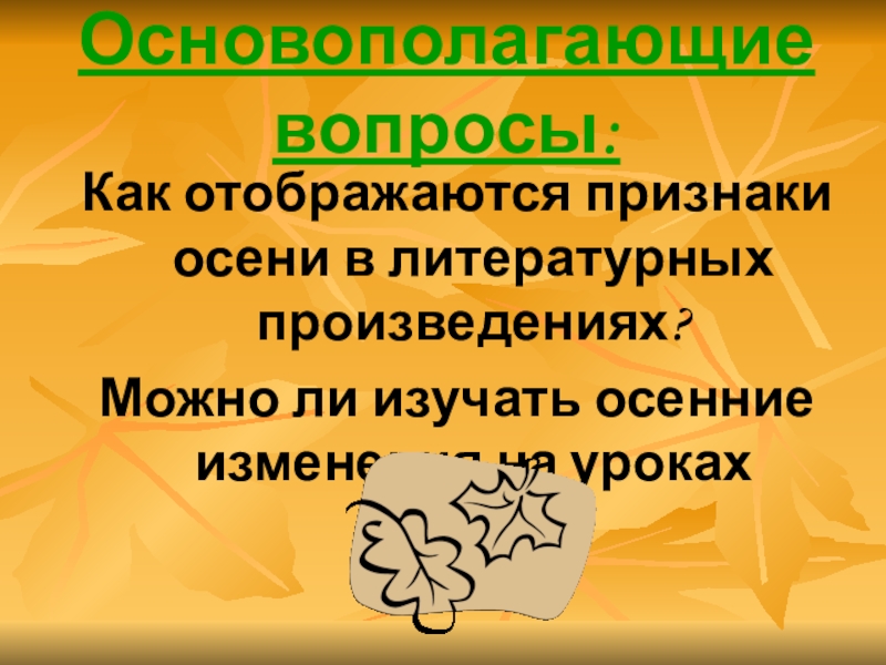Основополагающие вопросы:Как отображаются признаки осени в литературных произведениях?Можно ли изучать осенние изменения на уроках чтения?