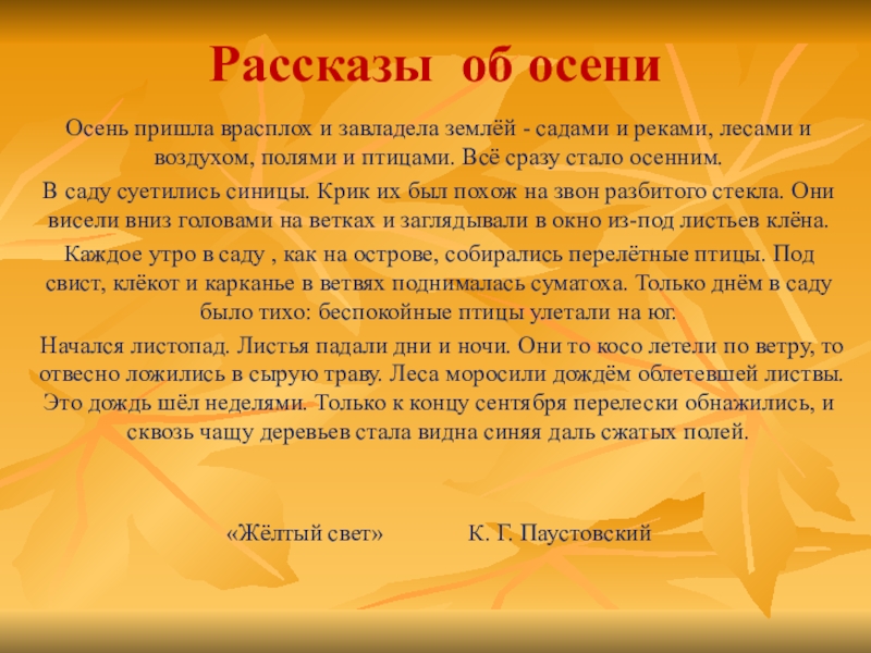 Слайд 19Рассказы об осени