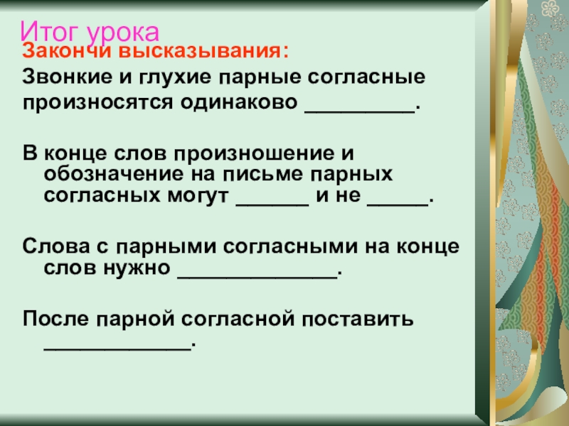 «Правописание парных согласных в конце и середине слова.»