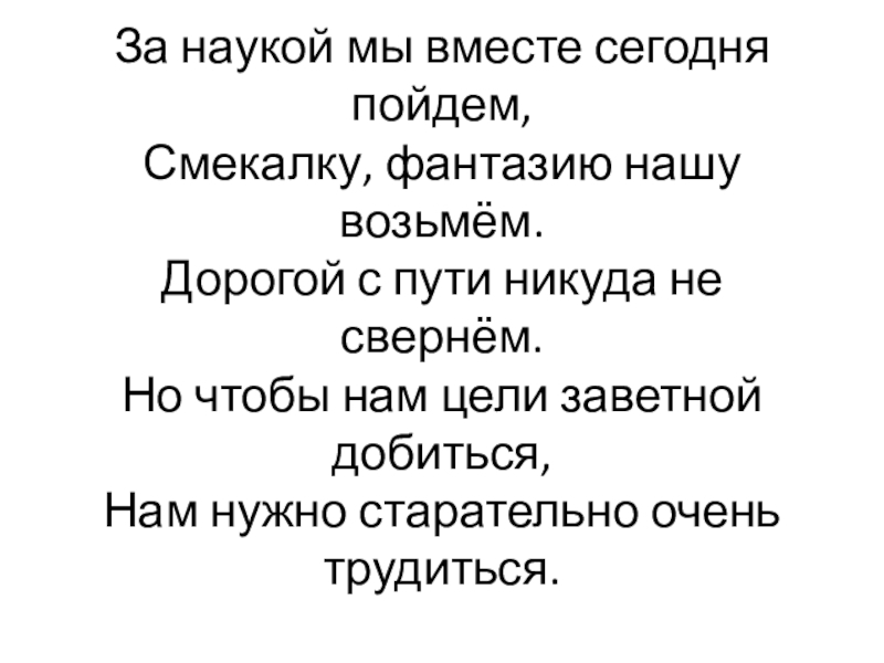 Но чтобы нам цели заветной добиться,