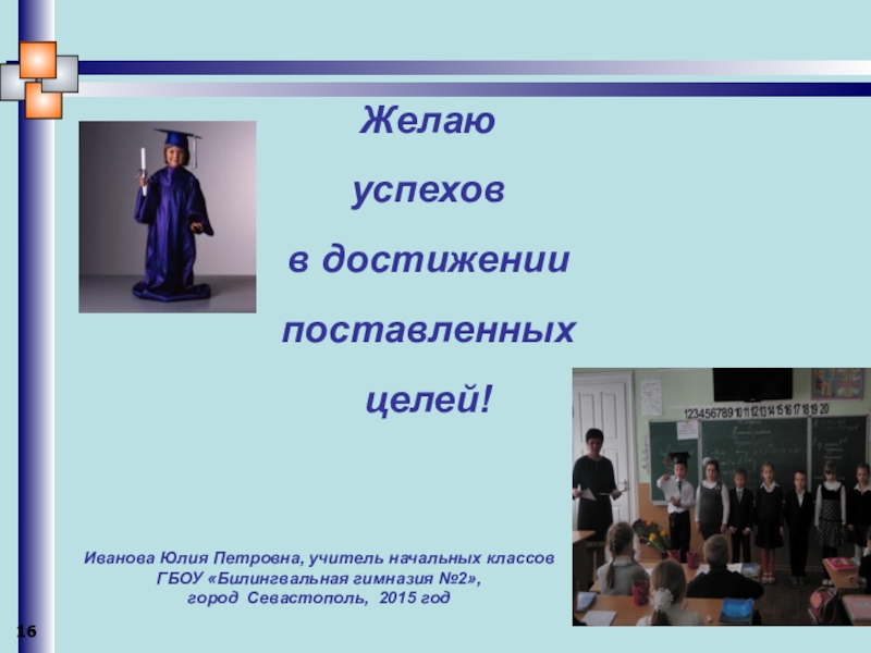 Иванова Юлия Петровна, учитель начальных классов ГБОУ «Билингвальная гимназия №2»,