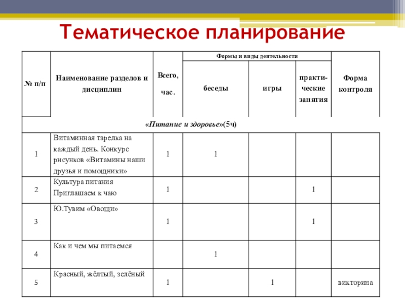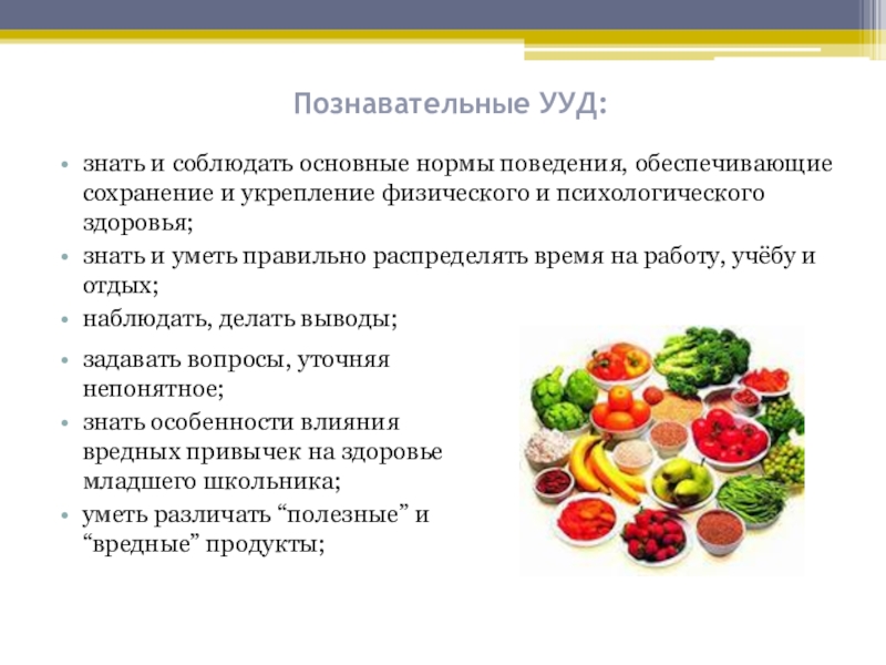 сформировать представление о правильном питании, его режиме, структуре, полезных продуктах;