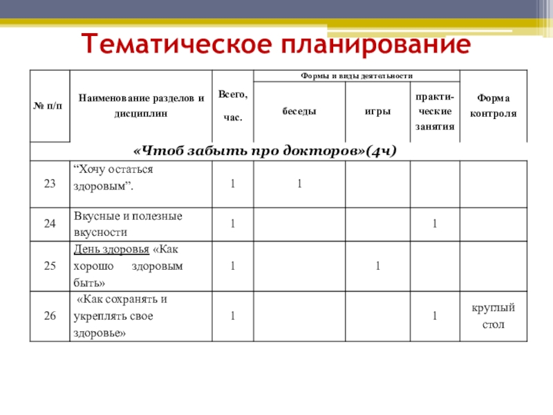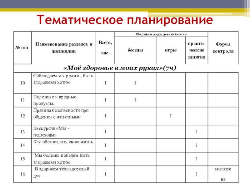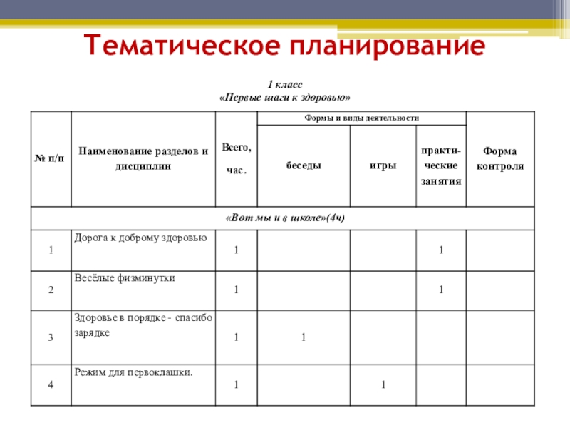 здоровья детей, мы раскрыта необходимость построения систематической работы по обучению детей основным нормам поведения, обеспечивающим сохранение и укрепление здоровья; безопасному поведению в школе и дома.