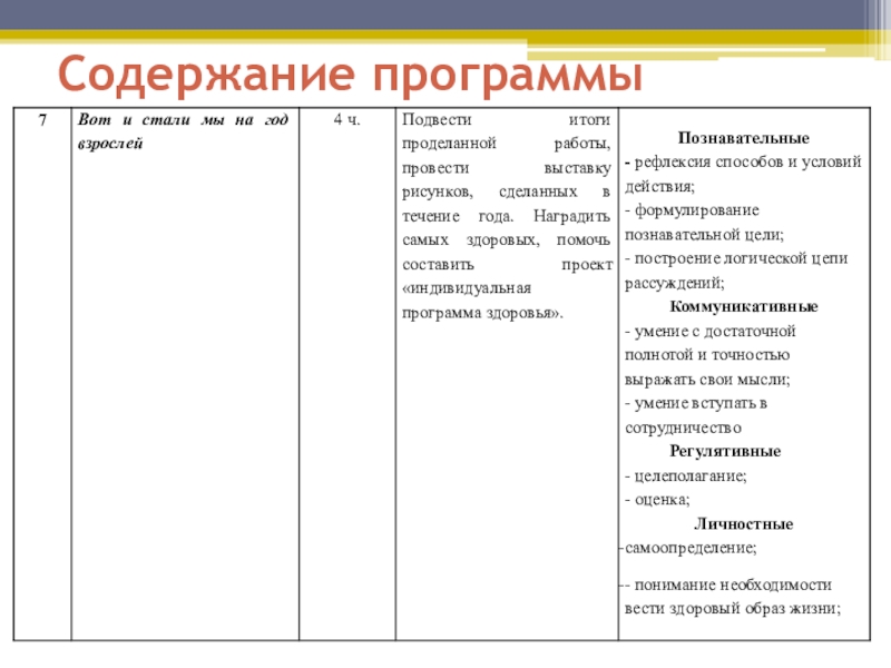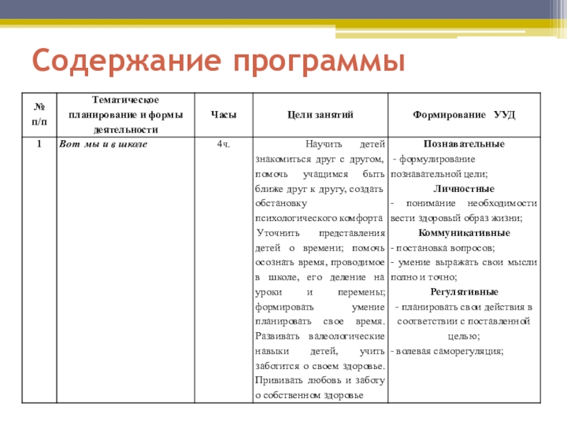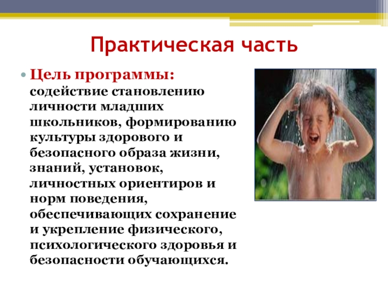 Цель программы: содействие становлению личности младших школьников, формированию культуры здорового