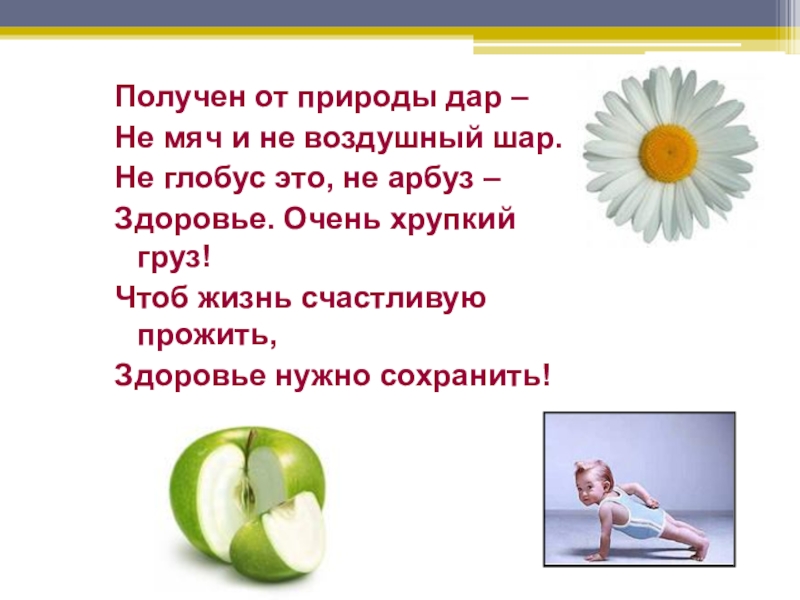 сформировать представления о позитивных факторах, влияющих на здоровье;