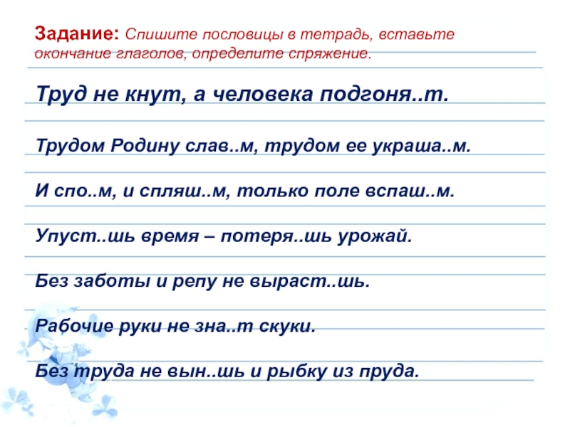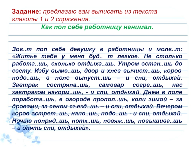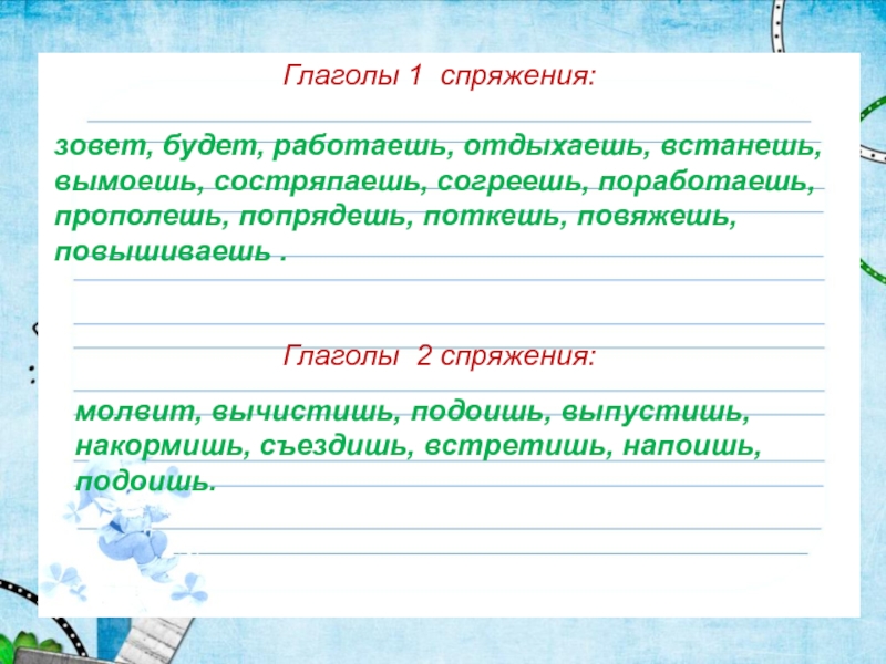 молвит, вычистишь, подоишь, выпустишь, накормишь, съездишь, встретишь, напоишь, подоишь.