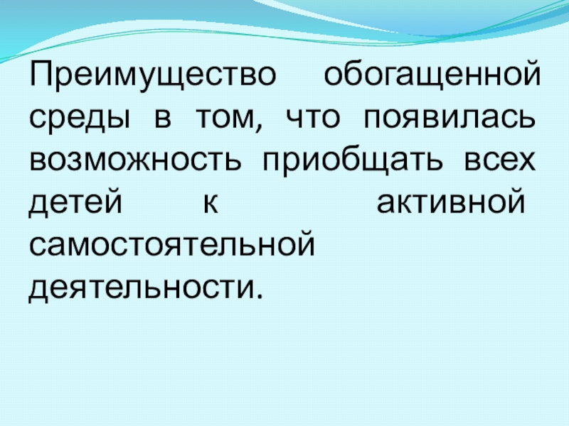 Слайд 21Преимущество обогащенной среды в том, что появилась возможность приобщать всех детей