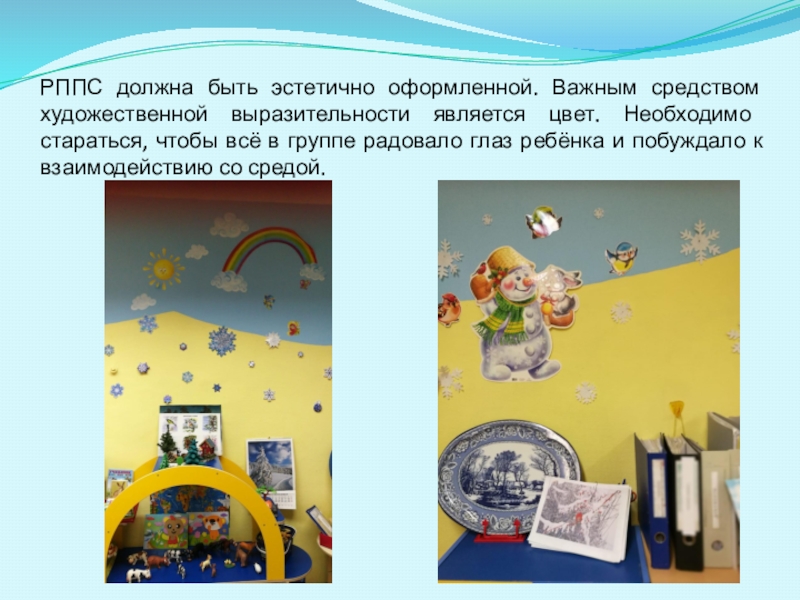 Слайд 4РППС должна быть эстетично оформленной. Важным средством художественной выразительности является цвет.