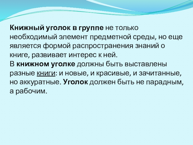 Слайд 14Книжный уголок в группе не только необходимый элемент предметной среды, но