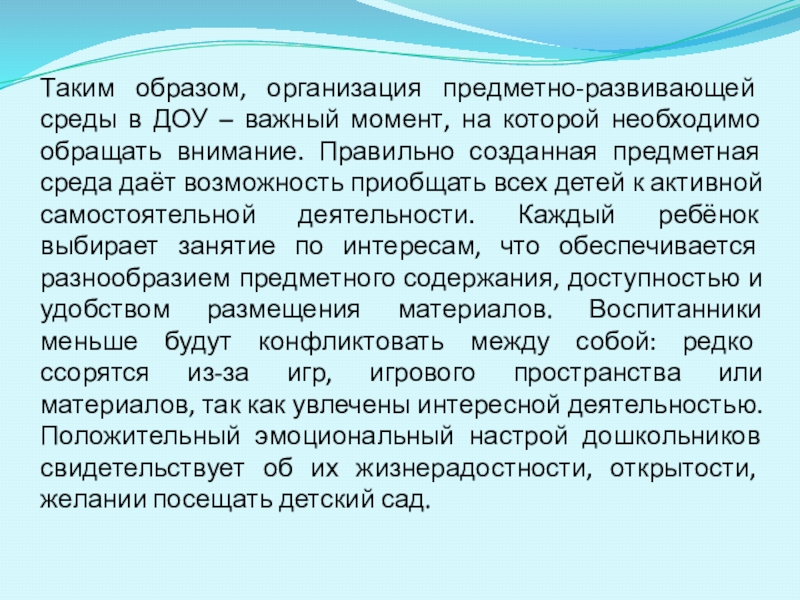 Слайд 22Таким образом, организация предметно-развивающей среды в ДОУ – важный момент, на