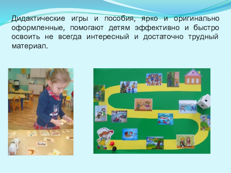 Слайд 6Дидактические игры и пособия, ярко и оригинально оформленные, помогают детям эффективно