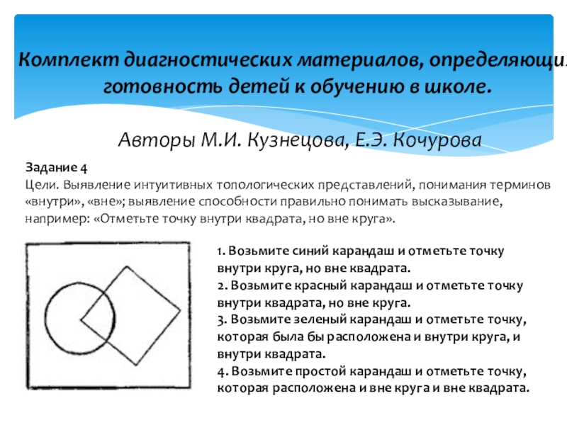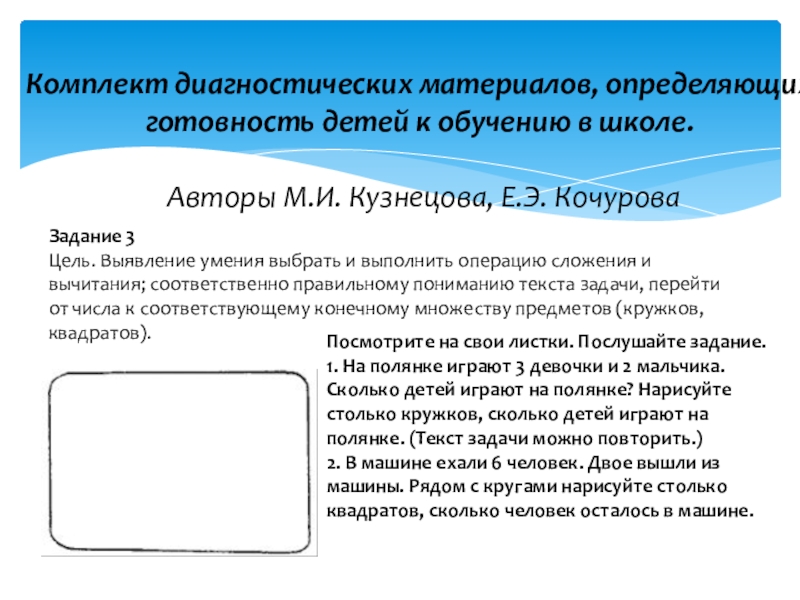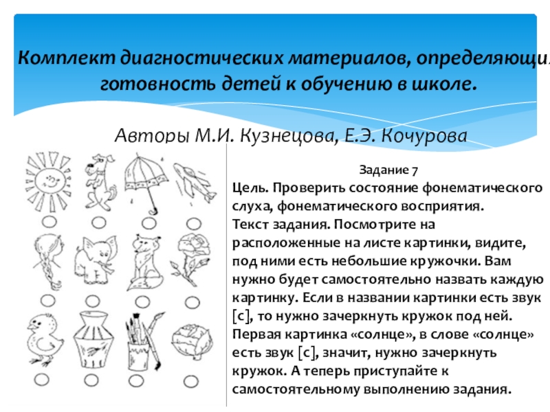 Комплект диагностических материалов, определяющих готовность детей к обучению в школе.