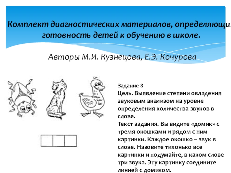 Цель. Выявление степени овладения звуковым анализом на уровне определения количества звуков в слове.