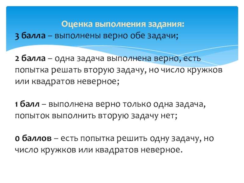 Текст задания. Найдите у себя на листках рисунок, на котором изображены круги и треугольники (указывается рисунок к заданию). Чего больше: кругов или треугольников? Если кругов больше, то нарисуйте рядом еще один круг. Если треугольников больше, то нарисуйте еще один треугольник.
