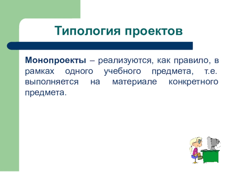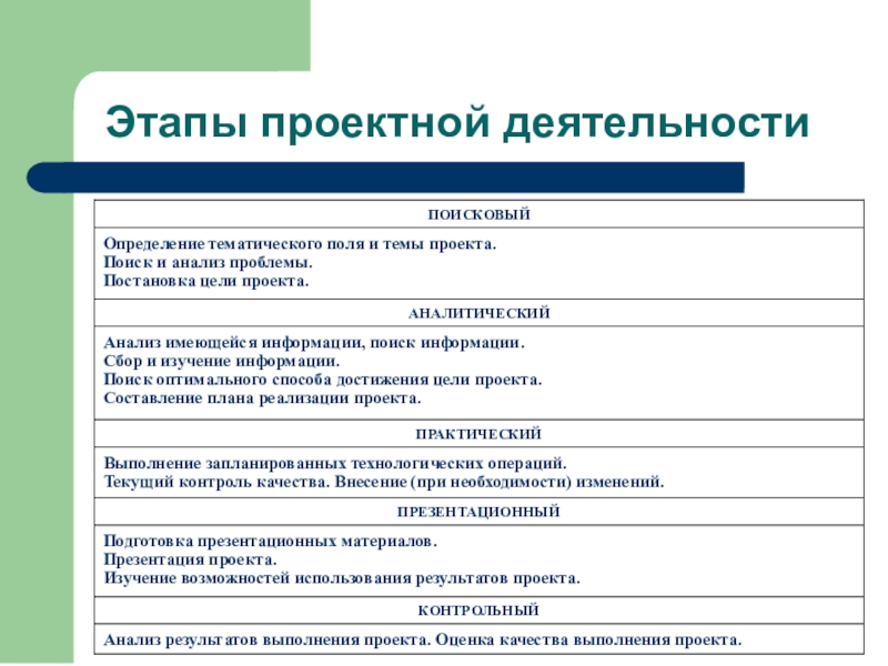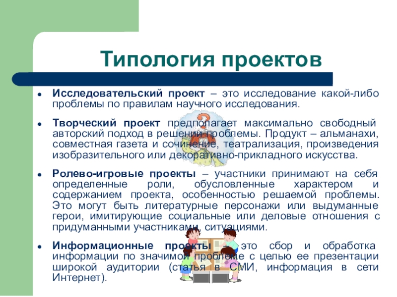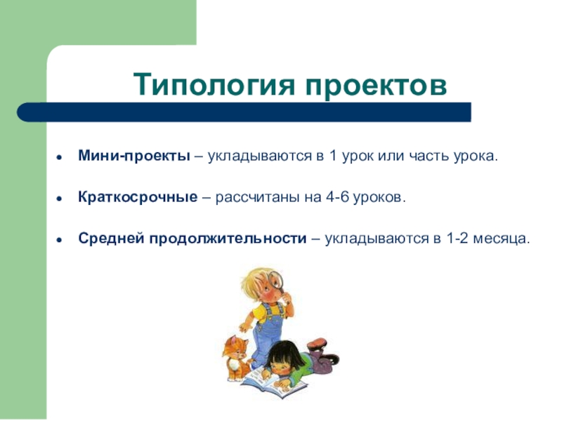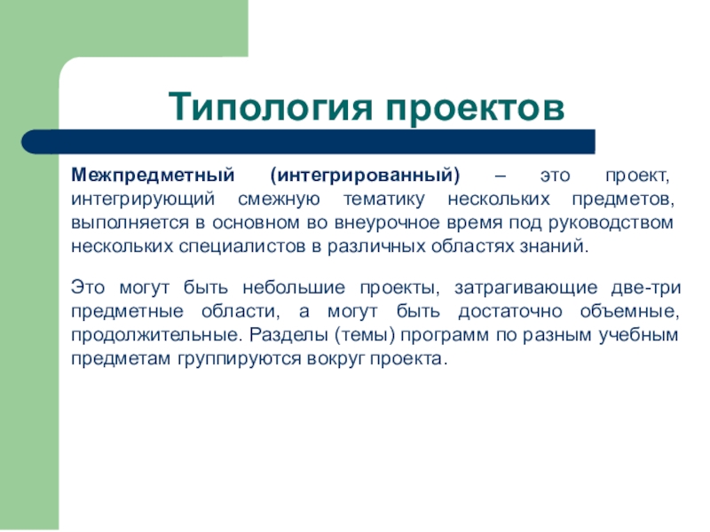 Это могут быть небольшие проекты, затрагивающие две-три предметные области, а могут быть достаточно объемные, продолжительные. Разделы (темы) программ по разным учебным предметам группируются вокруг проекта.