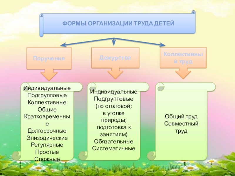 Слайд 20Формы организации труда детей