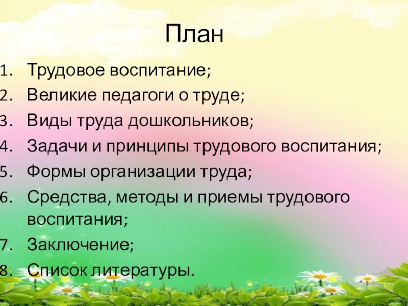 Задачи и принципы трудового воспитания;