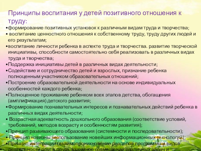 Принципы воспитания у детей позитивного отношения к труду.