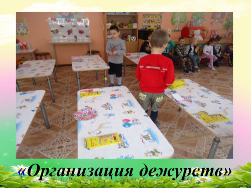 в помещении и участке, помощь взрослым в организации режимных моментов.