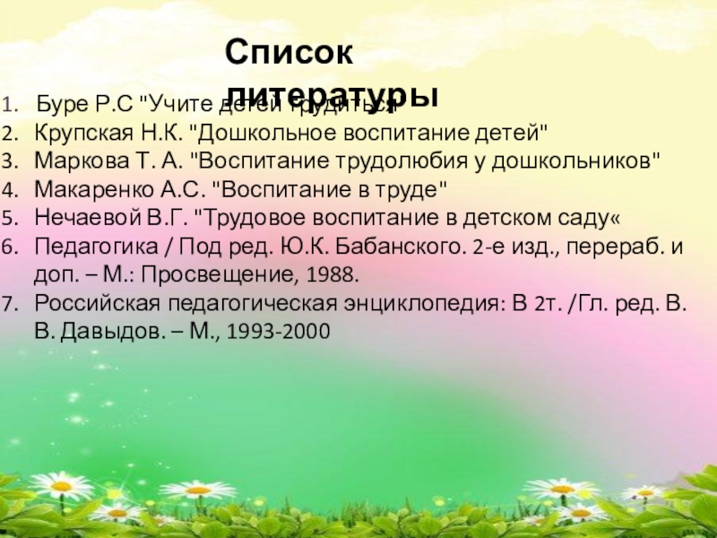 Нечаевой В.Г. "Трудовое воспитание в детском саду«