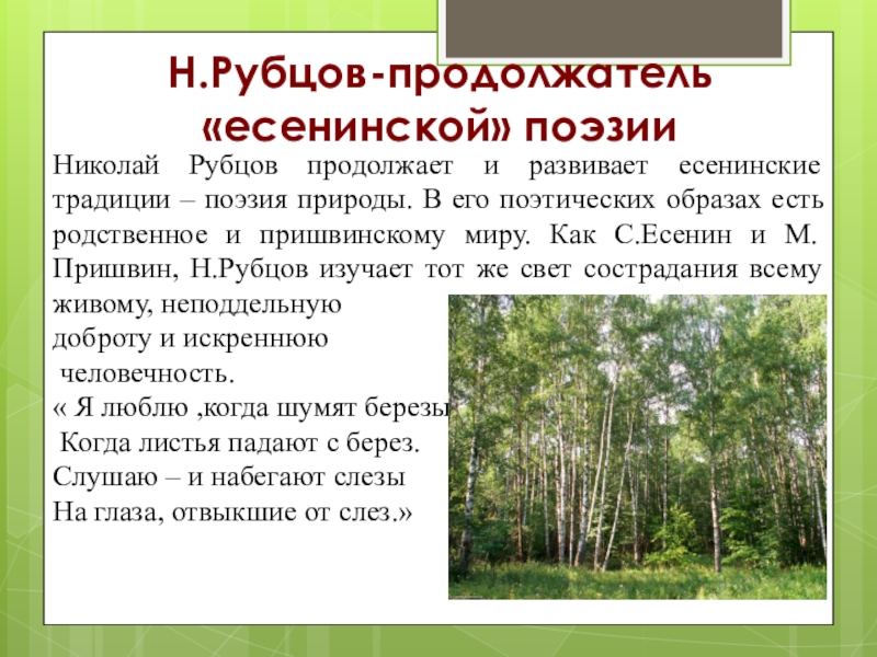 Слайд 12Н.Рубцов-продолжатель «есенинской» поэзии