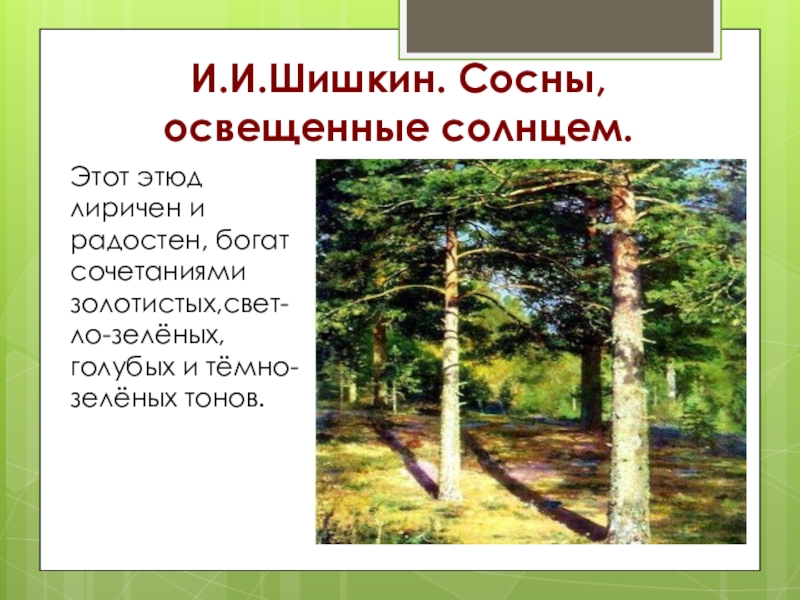 Слайд 14И.И.Шишкин. Сосны, освещенные солнцем.