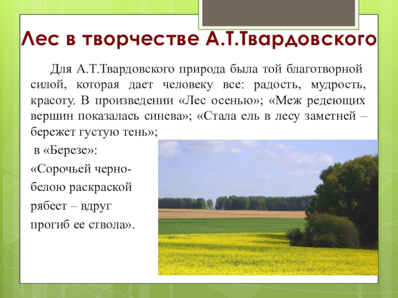 Слайд 8Лес в творчестве А.Т.Твардовского