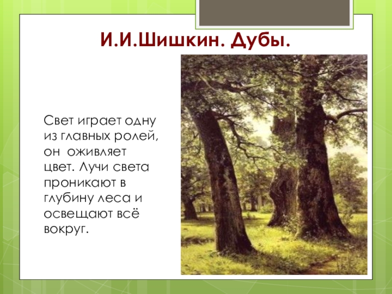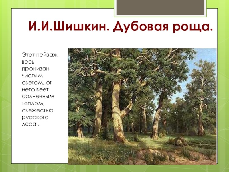 Слайд 18И.И.Шишкин. Дубовая роща.