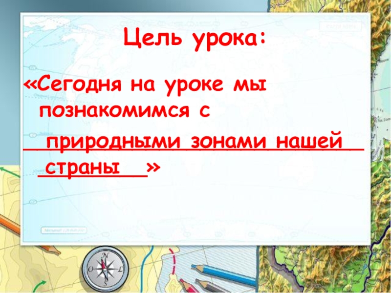 Цель урока:«Сегодня на уроке мы познакомимся с _________________________________»природными зонами нашей страны