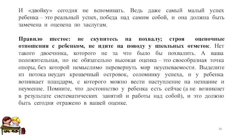 Слайд 56И «двойку» сегодня не вспоминать. Ведь даже самый малый успех ребенка