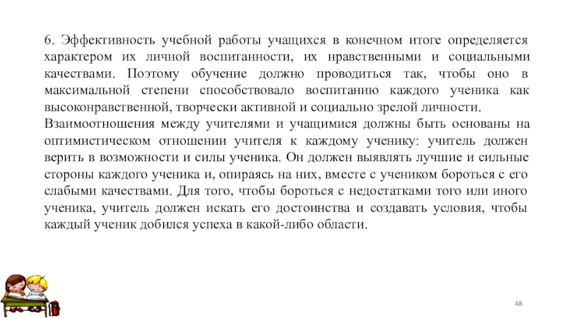Слайд 486. Эффективность учебной работы учащихся в конечном итоге определяется характером их