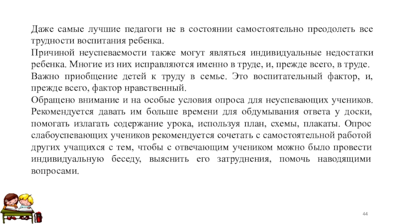 Слайд 44Даже самые лучшие педагоги не в состоянии самостоятельно преодолеть все трудности