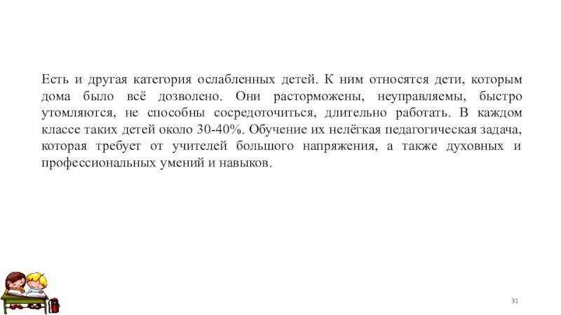 Слайд 21Низкая концентрация внимания у них обусловлена тем, что они в силу