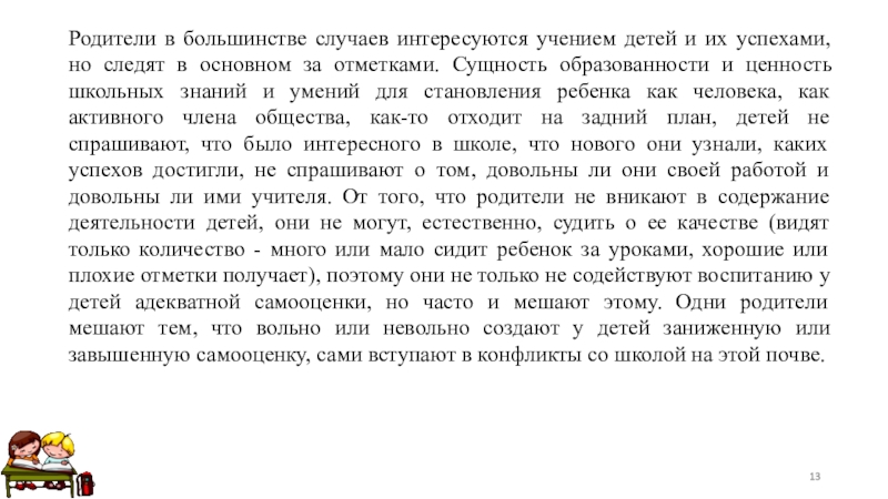 Слайд 13Родители в большинстве случаев интересуются учением детей и их успехами, но
