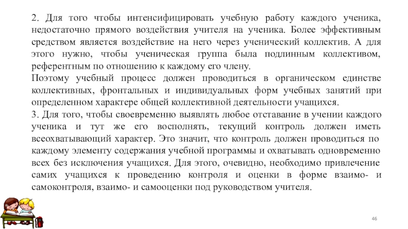 Слайд 462. Для того чтобы интенсифицировать учебную работу каждого ученика, недостаточно прямого