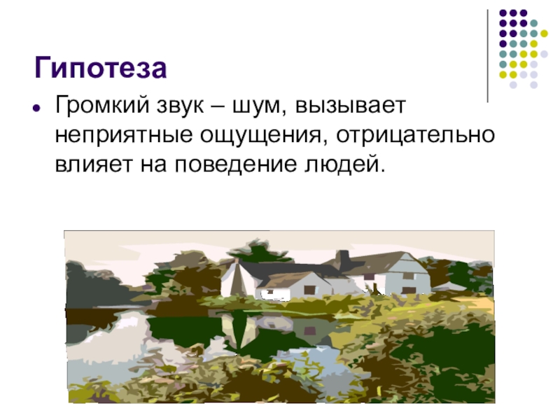 ГипотезаГромкий звук – шум, вызывает неприятные ощущения, отрицательно влияет на поведение людей.
