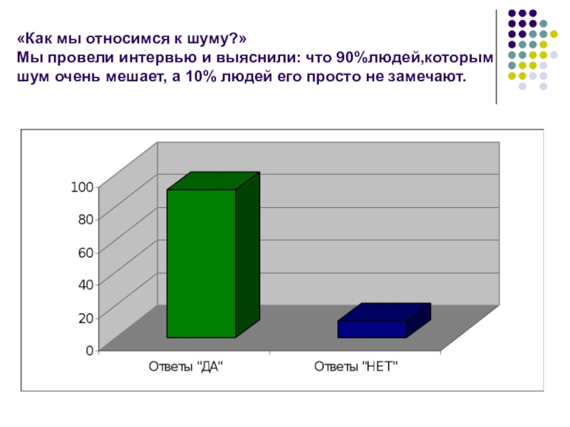 Слайд 8«Как мы относимся к шуму?» Мы провели интервью и выяснили: что 90%людей,которым