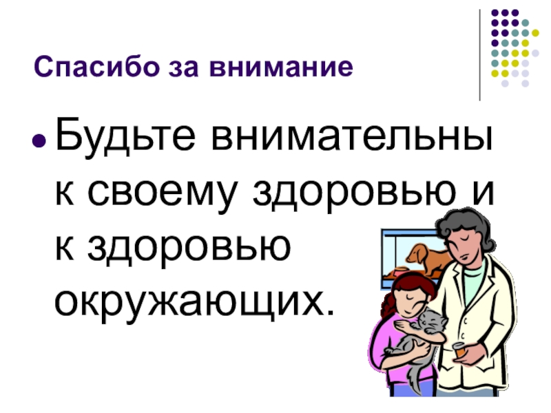 Спасибо за вниманиеБудьте внимательны к своему здоровью и к здоровью окружающих.