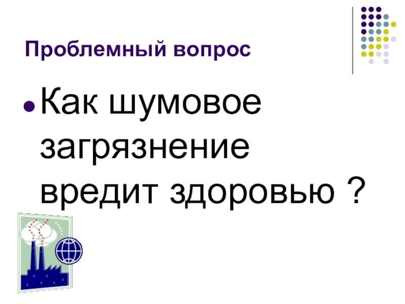 Проблемный вопросКак шумовое загрязнение вредит здоровью ?