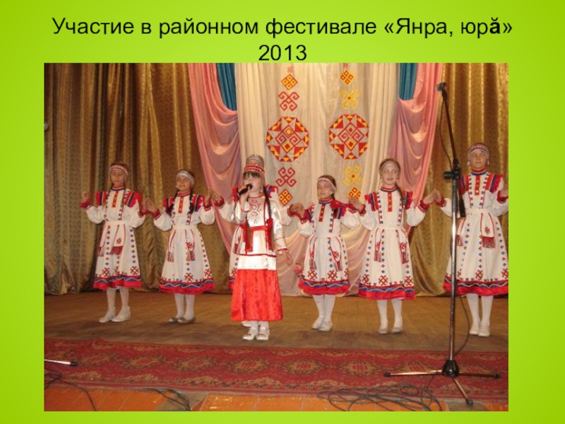 Слайд 32Участие в районном фестивале «Янра, юрӑ» 2013
