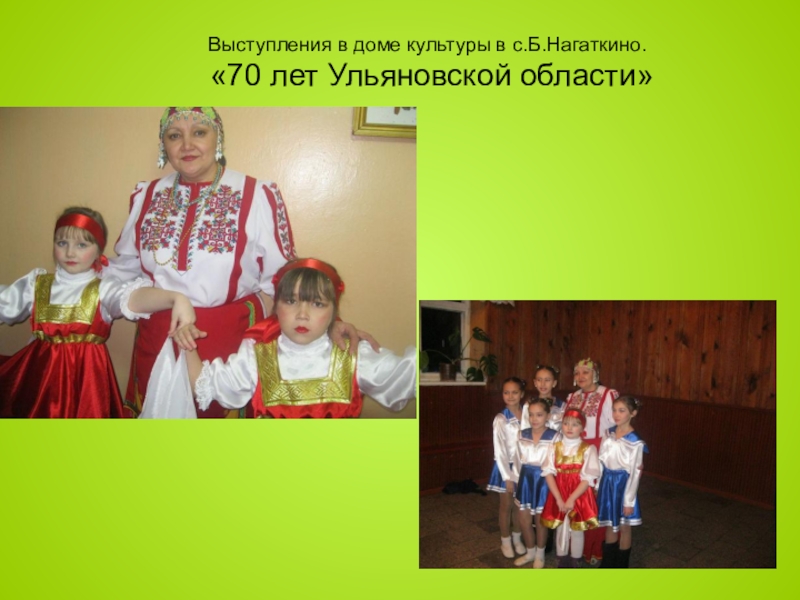 Слайд 36Выступления в доме культуры в с.Б.Нагаткино. «70 лет Ульяновской области»